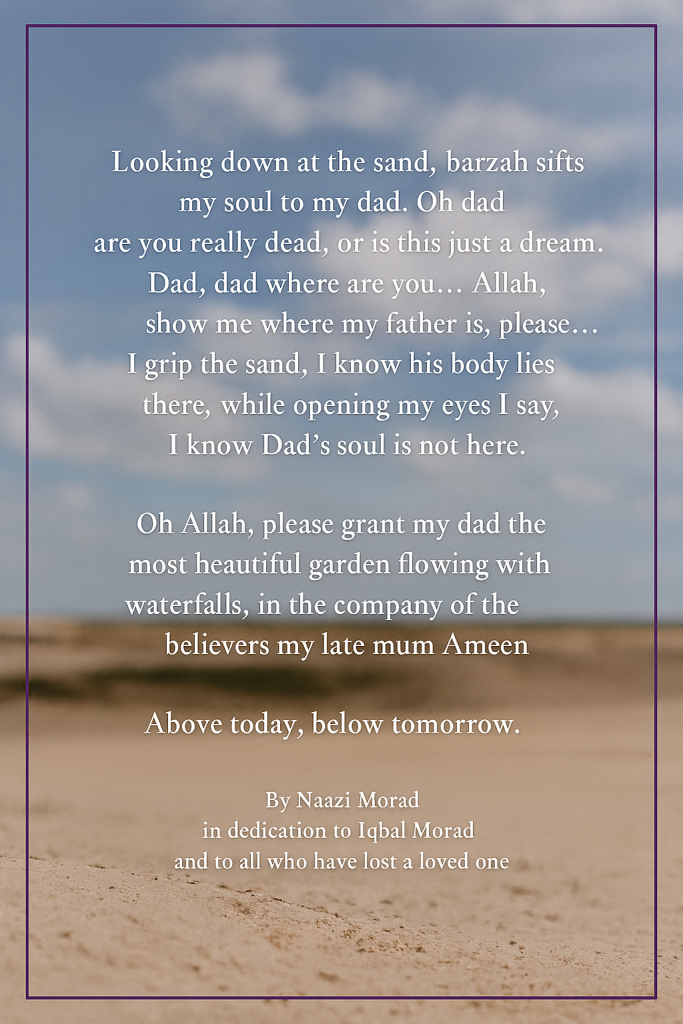 In Islam, Barzakh is not just a waiting room—it’s a mercy. A place where souls rest, where prayers reach, where love continues. My longing for my father is not madness. It’s fitrah—the soul’s natural yearning for reunion and divine mercy.