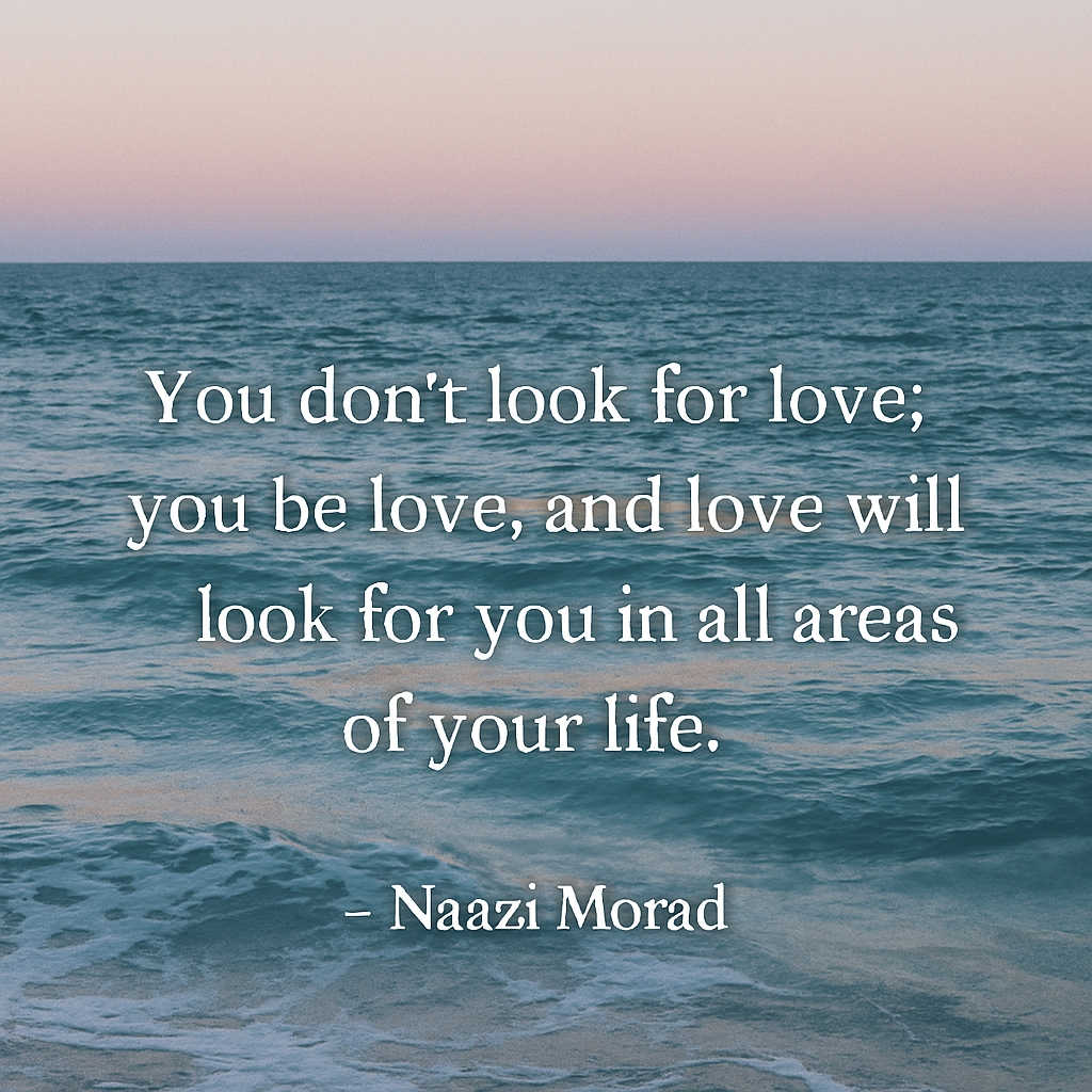 It arrives quietly, like the tide kissing the shore. It doesn’t demand it invites. It doesn’t overwhelm, it holds. And here’s the truth we often forget: You don’t look for love. You be love.
